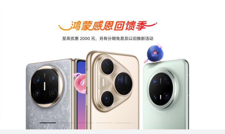近日,华为商城显示,华为MateX6、Pura80系列、Mate70系列开启了降价优惠。其中,华为MateX6最高降价2000元,Pura80系列最高降价1500元,Mate70系列最高降价1000元,均支持12期免息。